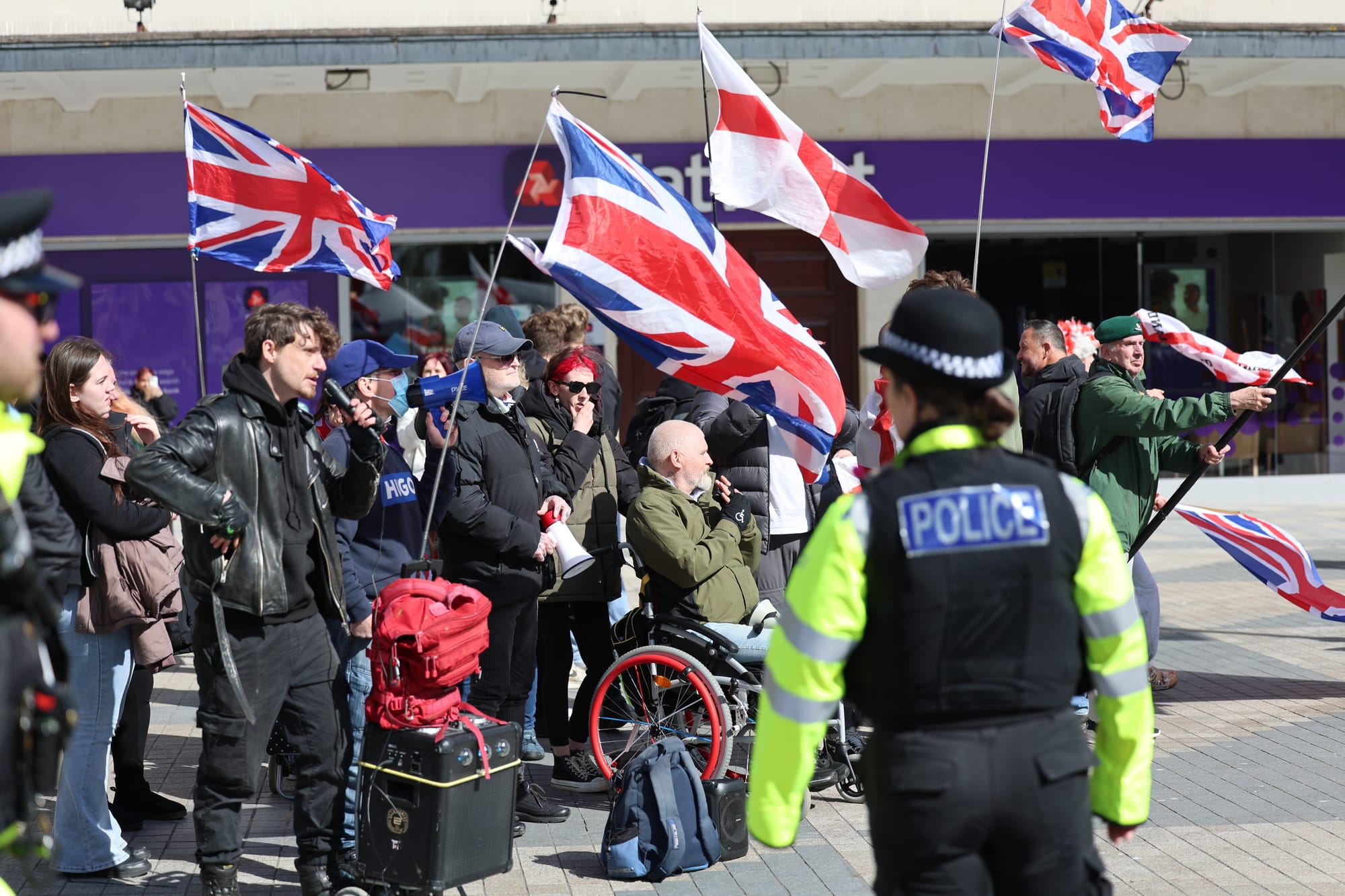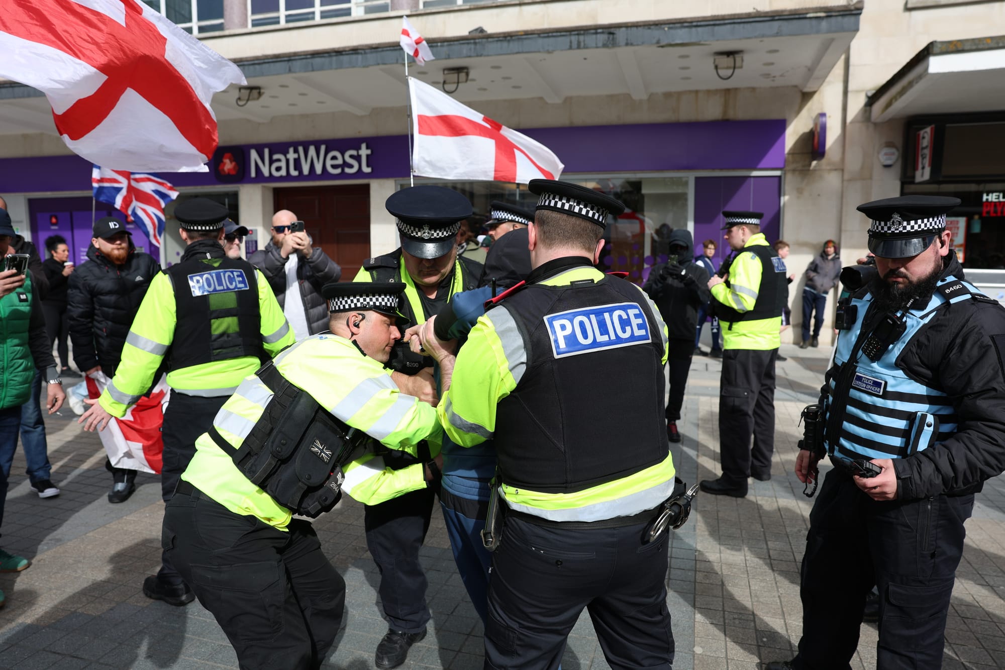 A group who identify themselves as Flag Force Plymouth organised a protest stating that it was to promote patriotism and celebrate “Plymouth’s identity as a proud, patriotic naval city”.