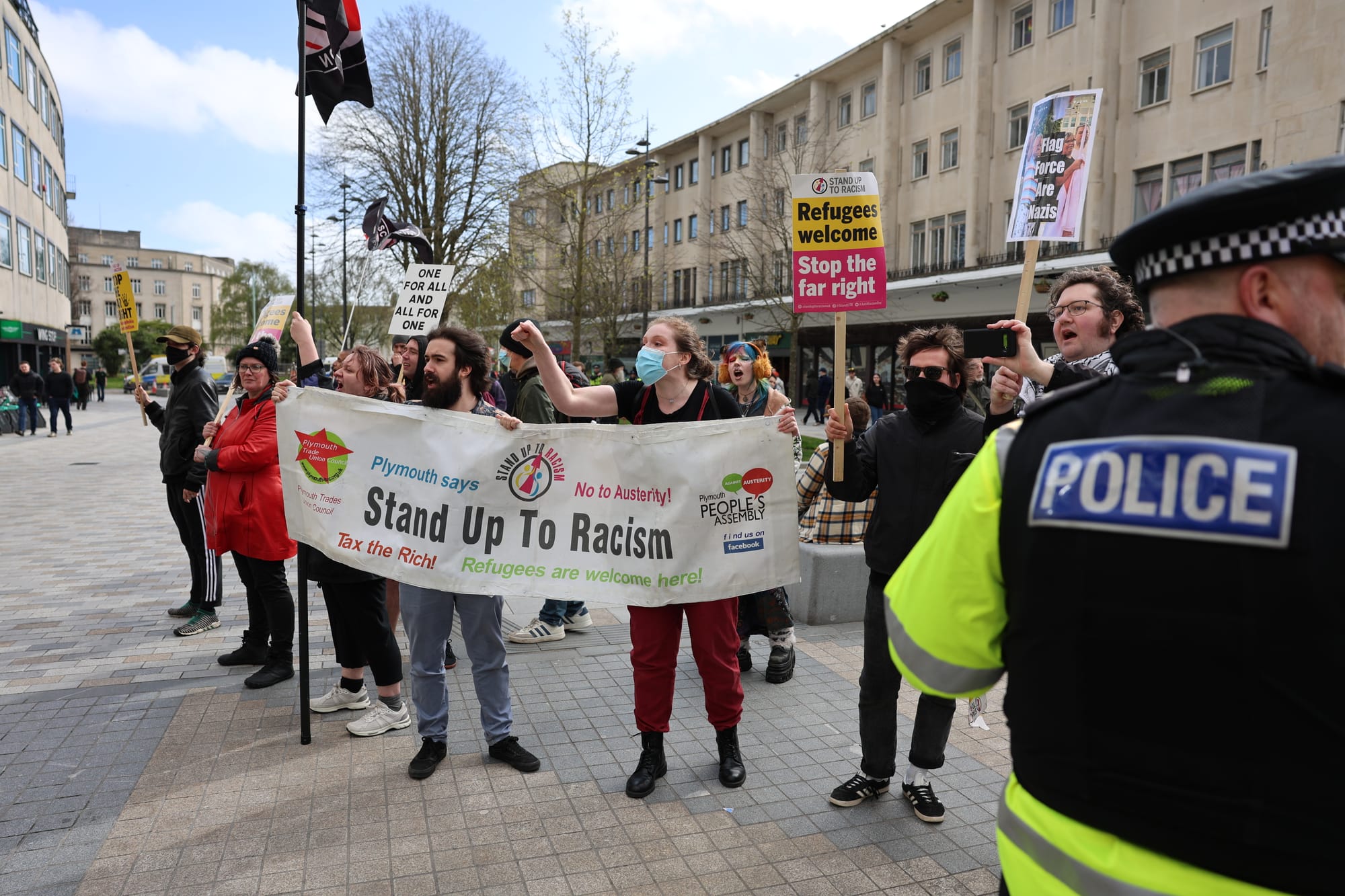 In response, a counter protest was organised by a group who call themselves Plymouth UK Anti-Fascists, in opposition to what they describe as “racism, hate and bigotry”.