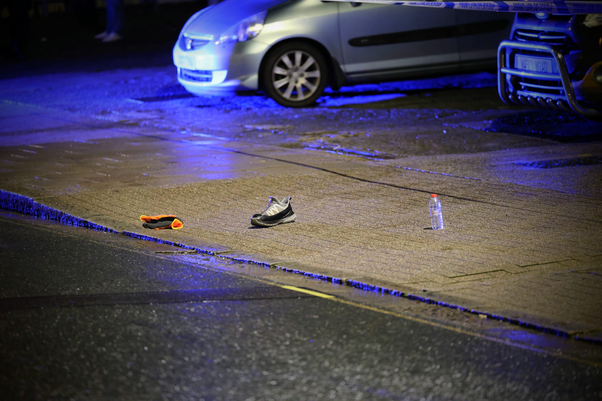 A police cordon put in place until the early hours of the morning while investigators examined the area. The remnants of a shoe, work glove and water bottle could be seen on the footpath.