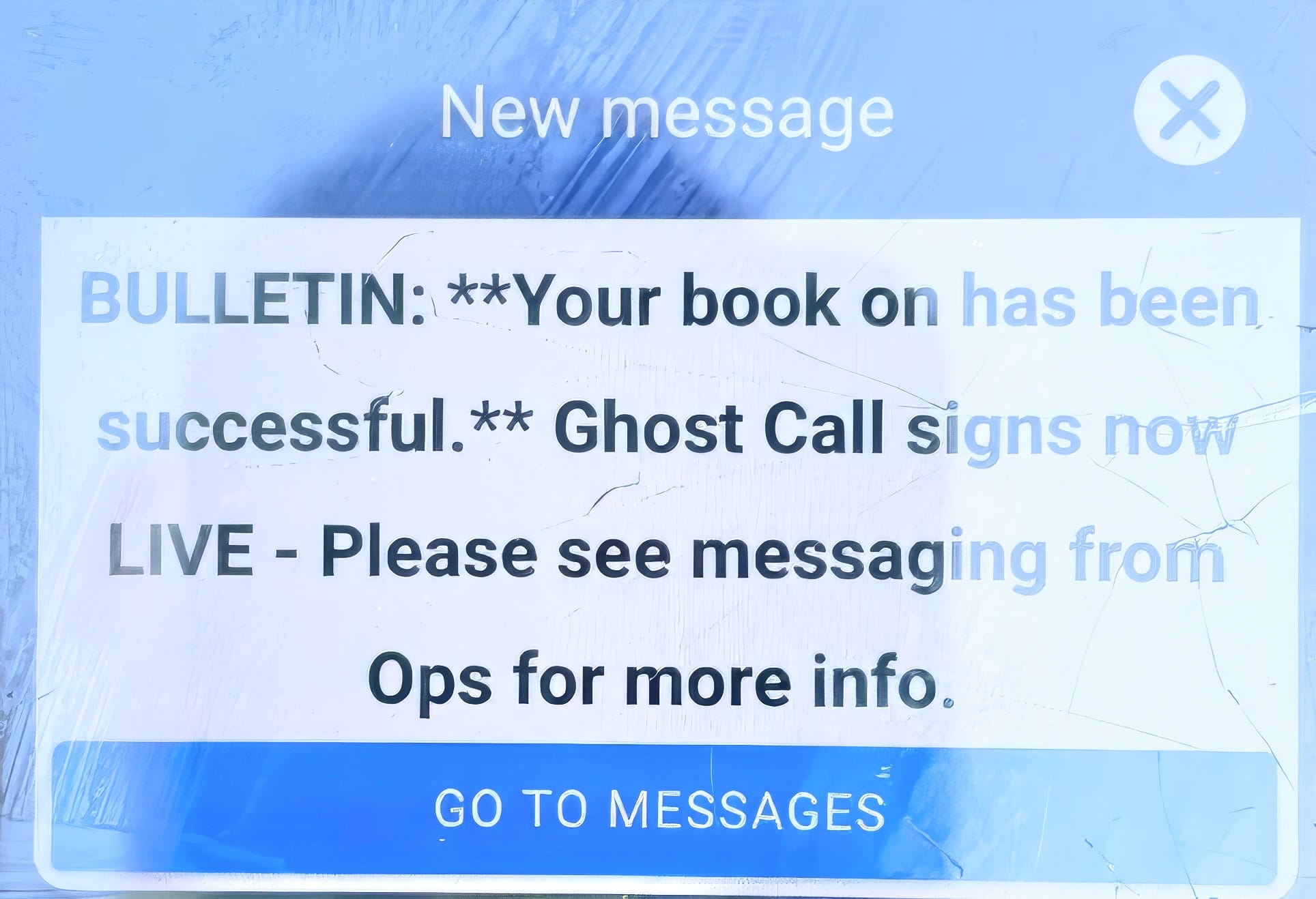 Plymouth Plus is tonight publishing, a screenshot of the internal staff app confirming a successful “book on” to a ghost call sign and stating “Ghost call signs now live” with a prompt to see Ops messages.