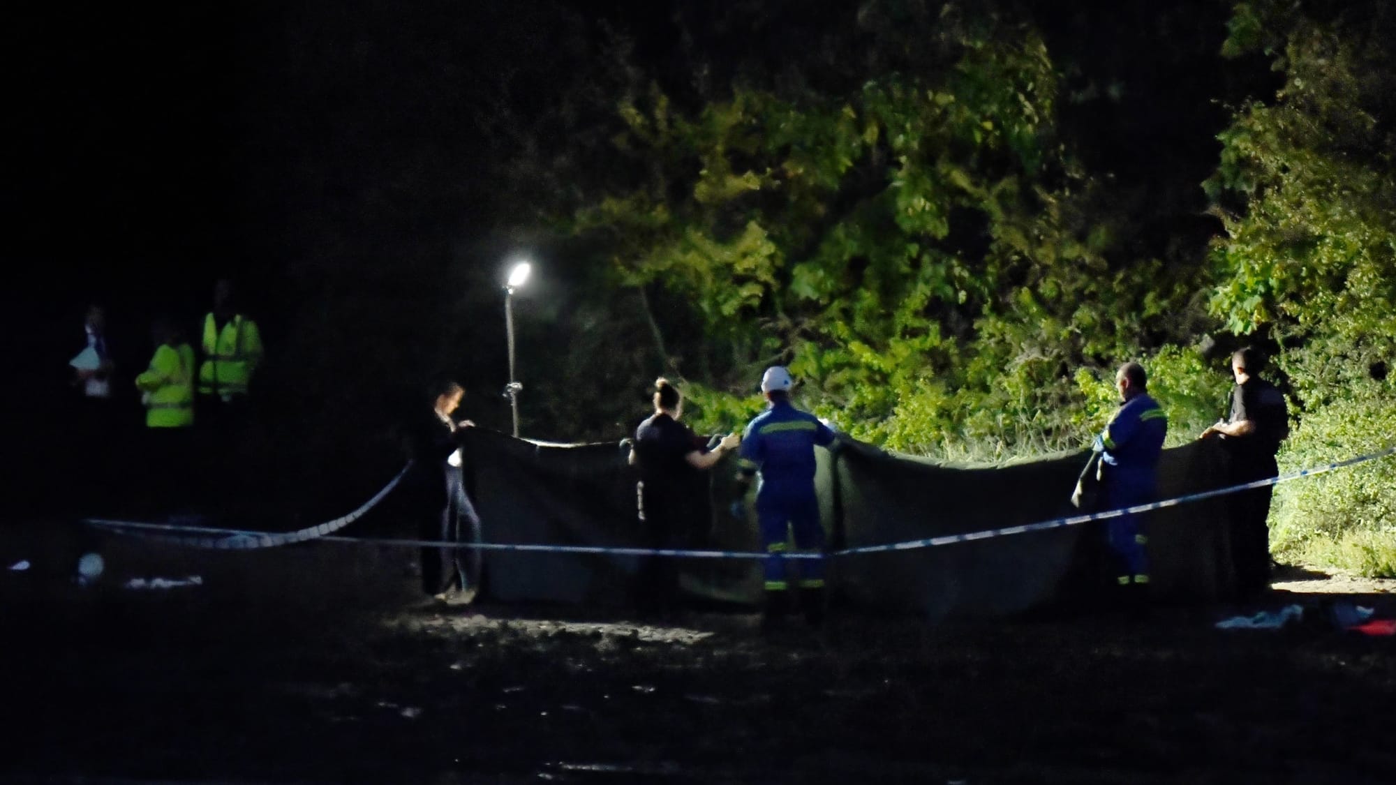 Privacy screens were erected on the foreshore and investigators were seen documenting the area as the response wound down.