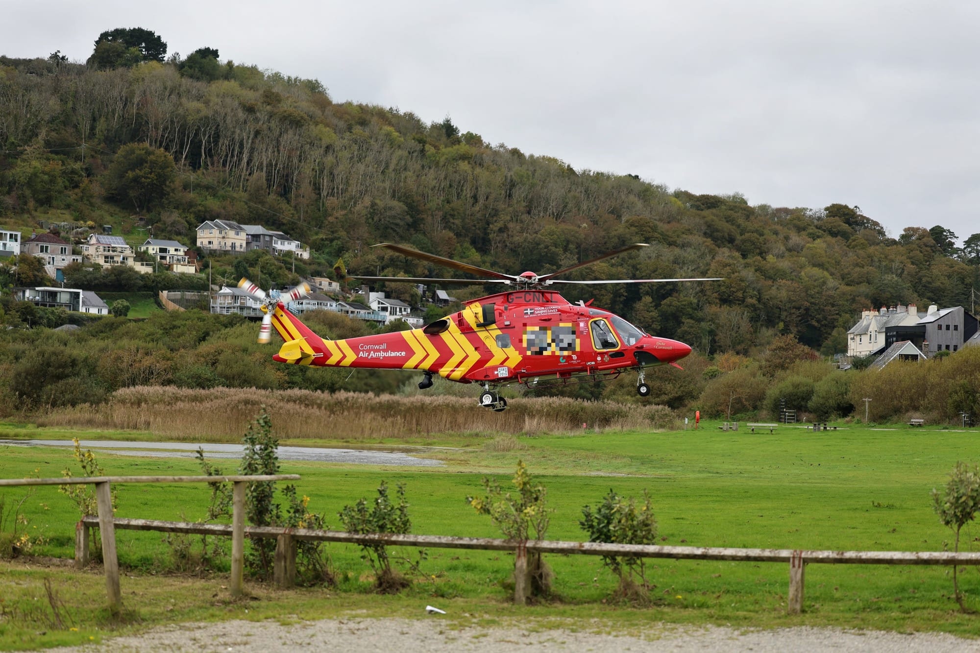 The Cornwall Air Ambulance landed in the Cornish seaside village of Seaton this afternoon after a man became critically unwell.