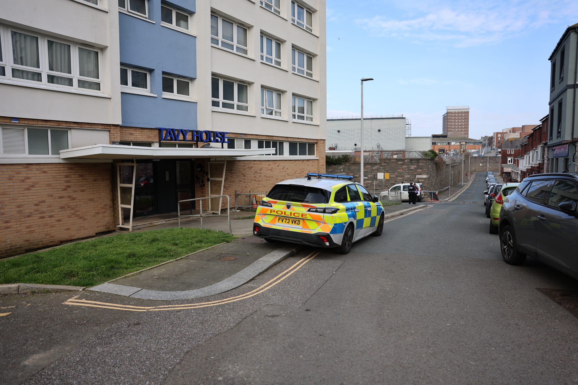 A woman has sadly died after a suspected medical episode outside a tower block in Plymouth this morning.